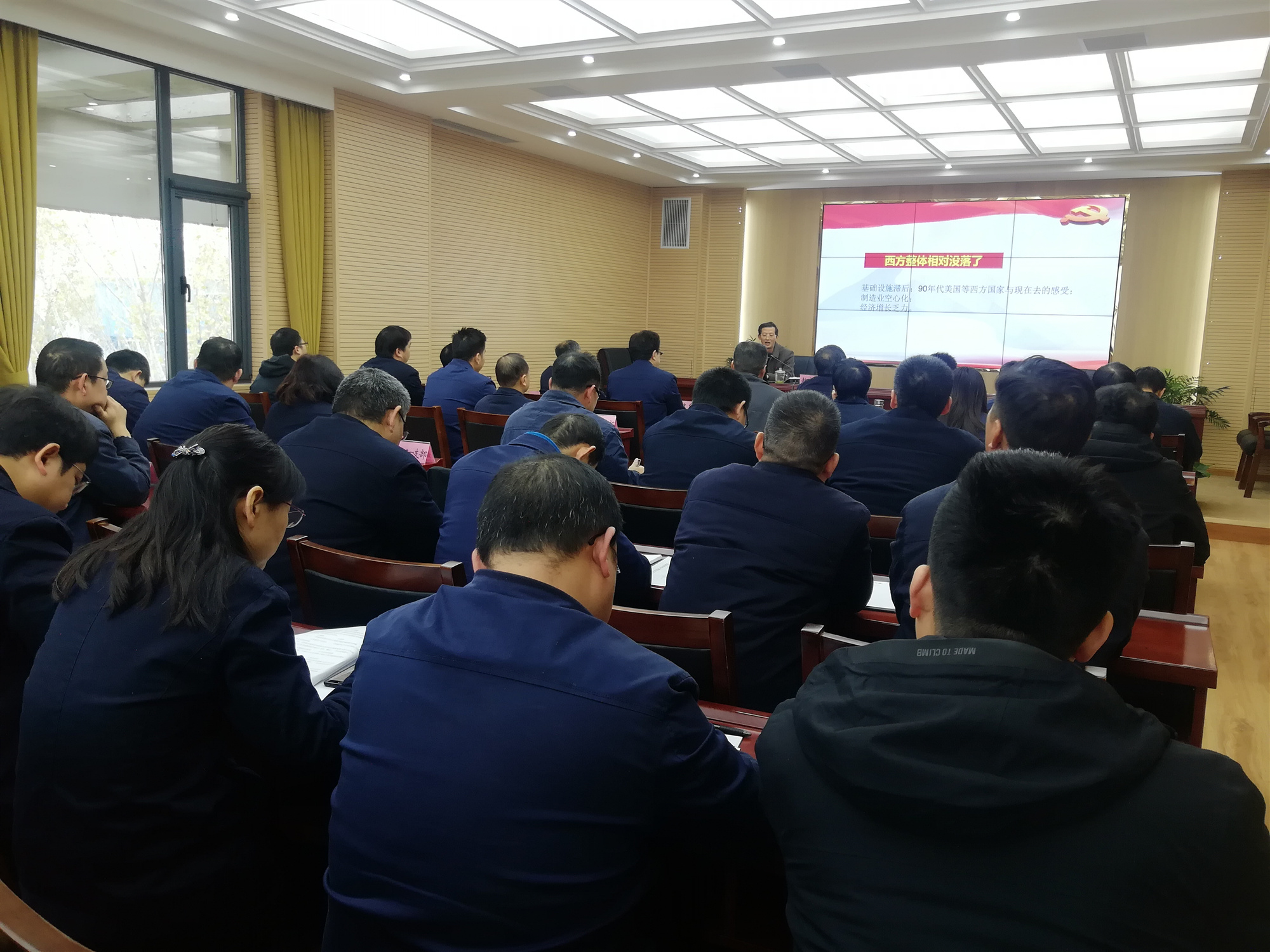 為認(rèn)真學(xué)習(xí)貫徹黨的十九屆五中全會(huì)精神,切實(shí)增強(qiáng)同力水泥豫西運(yùn)營區(qū)全體員工的思想自覺、政治自覺和行動(dòng)自覺,把十九屆五中全會(huì)的各項(xiàng)決策部署和工作要求落到實(shí)處,12月3日,黃河同力、騰躍同力舉辦黨委理論學(xué)習(xí)中心組(擴(kuò)大)集體學(xué)習(xí)報(bào)告會(huì),邀請(qǐng)洛陽市委十八大、十九大精神宣講團(tuán)成員、市委黨校黨史黨建教研部副教授趙家國作題為“歷史交匯點(diǎn)上的宏偉藍(lán)圖——黨的十九屆五中全會(huì)精神解讀”主題報(bào)告。黃河同力、騰躍同力黨委班子成員、各支部書記、中層干部和各支部支委代表40余人等聽取了報(bào)告。